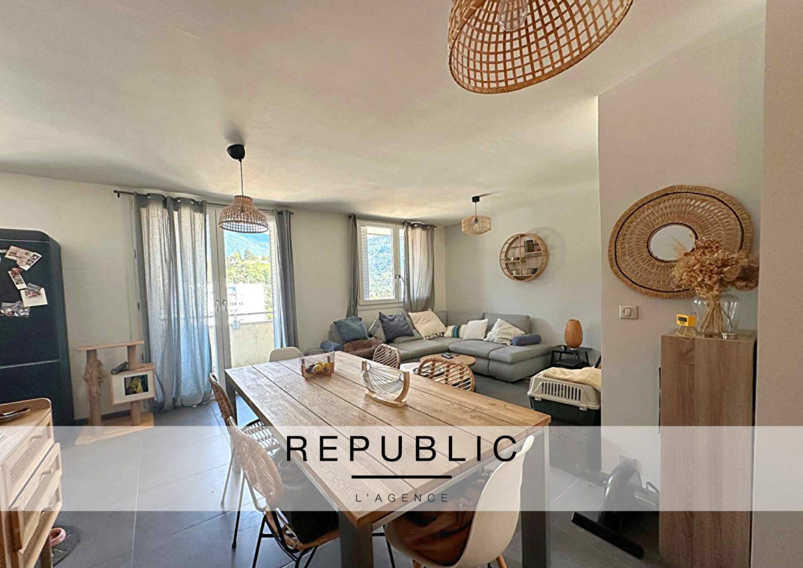 Votre AGENCE REPUBLIC vous propose : Un appartement T3 situé au 10éme et dernier étage et à deux pas du centre ville. Calme et ensoleillement maximum ! Il se compose d'une belle pièce de vie lumineuse donnant sur un balcon, une cuisine équipée, deux chambres, une salle d'eau, wc séparé. Une cave complète ce bien. Chauffage collectif urbain. Aucun travaux à prévoir. Une visite ! Contactez Aurélie KNIEBIHLY au 06.18.03.05.61 La présente annonce a été rédigée sous la responsabilité éditoriale de Madame Aurélie KNIEBIHLY, négociatrice immobilier indépendante (sans détention de fonds) immatriculée au RSAC de CHAMBERY (Savoie) sous le numéro 751 383 001, pour le compte de la société dénommée SARL REPUBLIC. Les informations sur les risques auxquels ce bien est exposé sont disponibles sur le site Géorisques: www.georisques.gouv.fr Bien non soumis aux obligations légales de débroussaillement