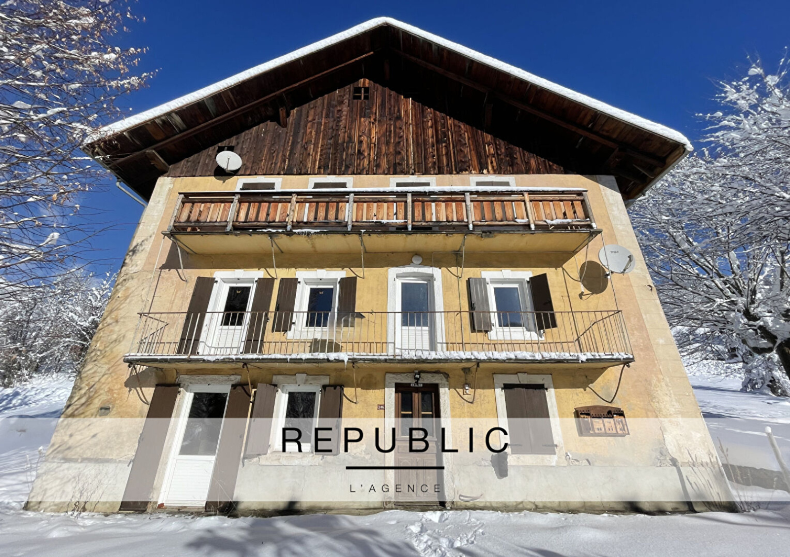 Votre AGENCE REPUBLIC vous présente un bien RARE A LA VENTE ! Sur la commune de Flumet proche des stations du Val d'Arly, Megève... Un immeuble d'env. 222m², à rénover, sur 1400m² de terrain + une parcelle de terrain constructible attenante d'env.1274m². L'immeuble à rénover dispose en plus d'une grange d'env. 114m² . L'ensemble sur un terrain total d'env. 2754m² Idéal investisseurs, promoteurs... Pour tous renseignements contactez : Aurélie KNIEBIHLY au 06.18.03.05.61 La présente annonce a été rédigée sous la responsabilité éditoriale de Madame Aurélie KNIEBIHLY, négociatrice immobilier indépendante (sans détention de fonds) immatriculée au RSAC de CHAMBERY (Savoie) sous le numéro 751 383 001, pour le compte de la société dénommée SARL REPUBLIC. Les informations sur les risques auxquels ce bien est exposé sont disponibles sur le site Géorisques: www.georisques.gouv.fr Bien non soumis aux obligations légales de débroussaillement